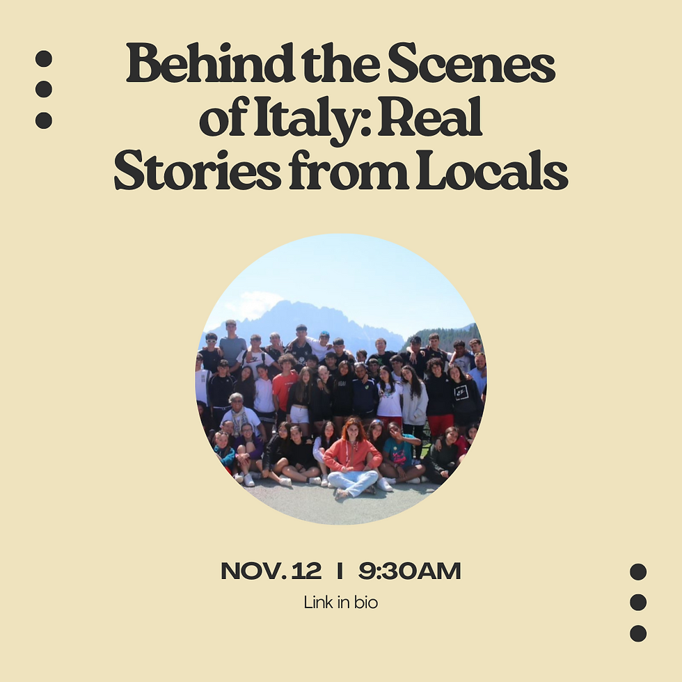 Step into the heart of Italy 🇮🇹✨ Get a glimpse of everyday Italian life through personal stories, local traditions, and authentic experiences. Ready to see Italy like a local? Join us November 12th at 9:30am via zoom!